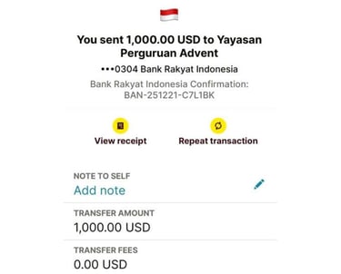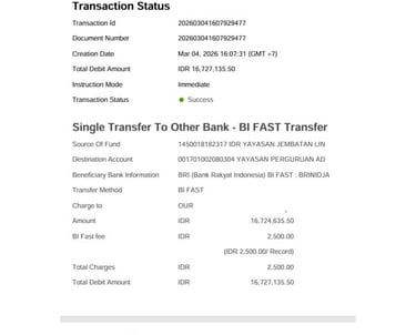 Bukti Transfer Sumbangan Yang Tersalurkan